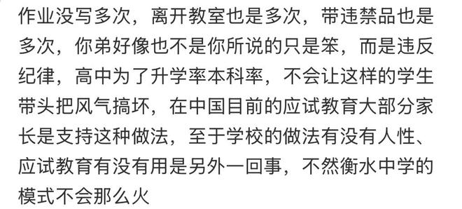 æç½å认为ï¼å¦æ ¡æä¸å¥èªå·±çè§èå¶åº¦æ å¯åéï¼æè¡å乿¯å¦æ ¡ç®¡çå¦ççä¸ç§æ¹å¼ï¼ä»èæ ¸è¡¨å¯ä»¥çåºï¼èå ççå¼å¼å¦ä¹ è¡ä¸ºåæåº¦é®é¢æ¯è¾ä¸¥éï¼åéå¤åå¹¶æ ä¸å½ã